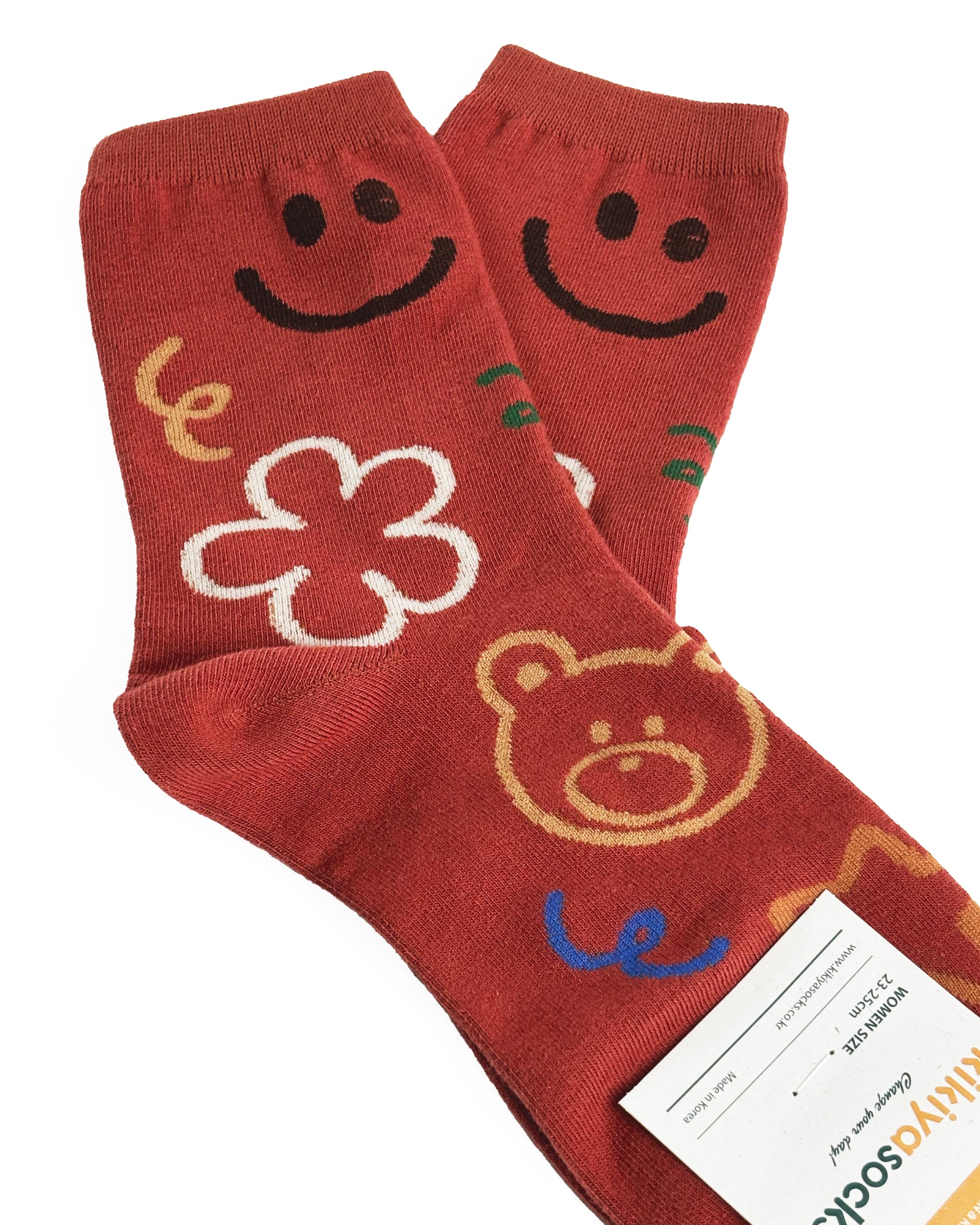 Calze in misto cotone con fantasia a disegnini, tra cui smile, orsetti e margherite