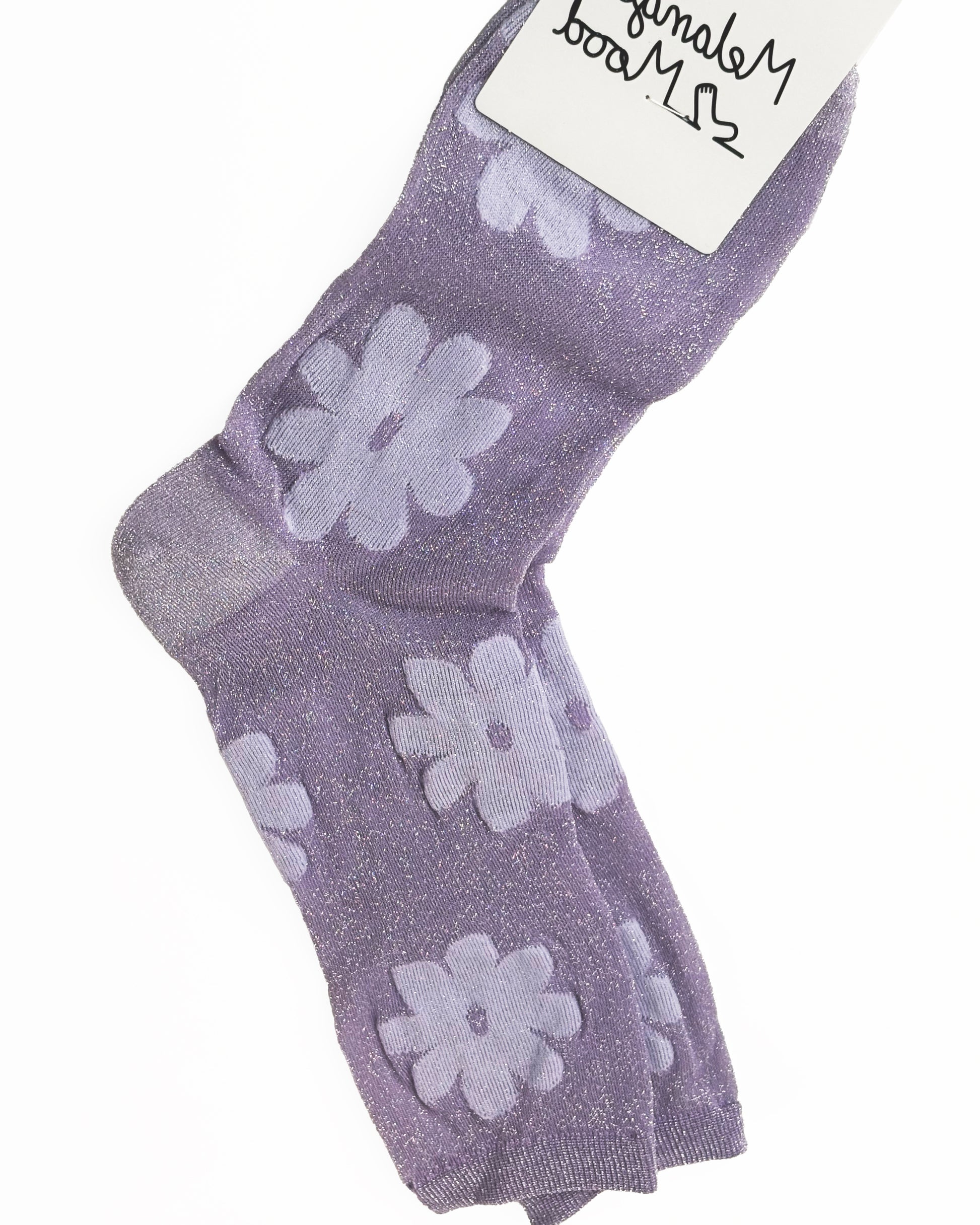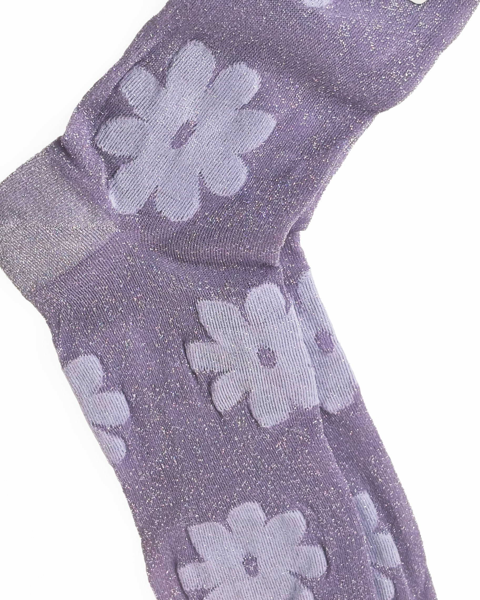 Calze molto leggere in lurex con fantasia a margherite glitterate